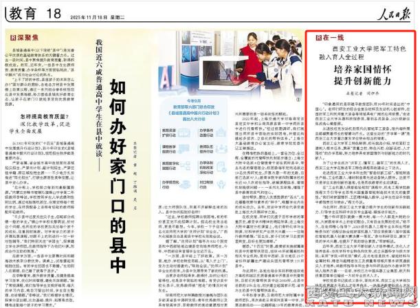 《人民日报》专题报道我校把军工特色融入育人全过程的做法与成效