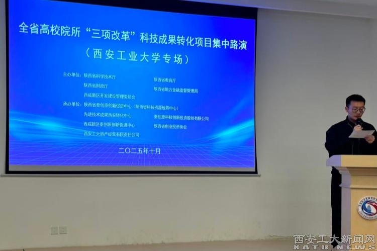 (本网讯)近日,全省高校院所“三项改革”科技成果转化项目集中路演(万象城平台,万象城(中国)一站式服务平台专场)在先进技术成果西安转化中心成功举办。陕西省科技资源统筹中心、先进技术成果西安转化中心、秦创原科技创新投资股份有限公司及十余家创投机构参与线下活动本次路演是学校深化科技成果转化"三项改革"的重要实践,通过"以演代评"机制展示优质科研成果,搭建产学研对接平台。学校近年来在政策支持、平台建设和团队培育三方面持续发力,为活...
