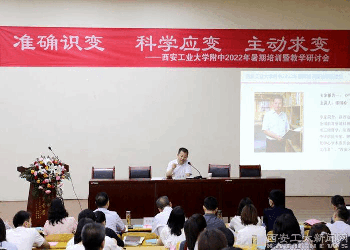 (本网讯)近日,我校附中举办了主题为“准确识变、科学应变、主动求变”的教师暑期培训,以大力推进新高考综合改革和新课程、新教材、新课标实施的国家战略行动,更新教师教育教学理念,促进教师专业成长。第一天的培训主题聚焦于课程改革。附中党总支书记、校长骞军荣致开幕词,副校长陶红主持培训。邀请了陕西省教育科学研究院邵国希副院长、陕西省教育科学研究院数学教研员焦宇老师和西北大学、陕西师范大学等高校教师培...