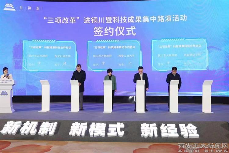 (本网讯)2月23日,陕西省科技厅联合铜川市政府开展“三项改革”进铜川暨科技成果集中路演活动。副省长戴彬彬、省政协副主席孙科出席活动并分别为秦创原“三项改革”成果转化试验区、校地共建科创中心揭牌。副校长陈建代表我校与铜川市政府签订“三项改革”科技成果转化合作协议。本次活动是陕西科技成果转化“三项改革”首次地市行,是陕西省进一步深化科技成果转化“三项改革”试点,加力加速秦创原创新驱动平台建设,发挥科...