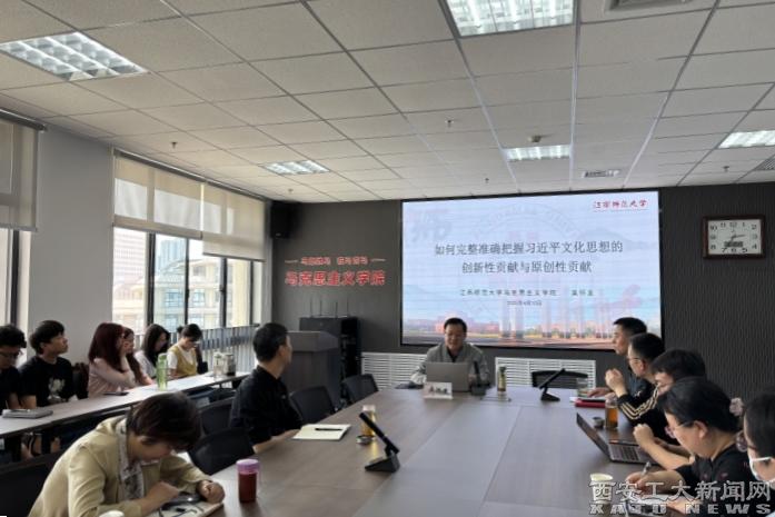 (本网讯)4月10日,在学校建校70周年校庆即将到来之际,我校马克思主义学院在未央校区教7楼514举办“‘学以成人’马克思主义学院高质量人才培养高端报告会暨庆祝建校70周年系列活动”报告会第二场,特邀国家特支计划领军人才,二级教授、江西师范大学马克思主义学院原院长吴怀友教授,为学院师生作了题为《如何理解习近平文化思想的创新性贡献与原创性贡献》的专题报告会,会议由院长梁华平主持。吴怀友从“理论创新”与“理...