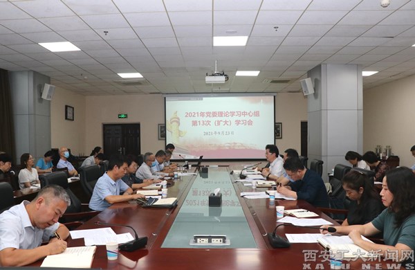 (本网讯)9月29日上午,学校党委理论学习中心组召开扩大学习会。会议由校党委书记刘卫国主持。 会议分为两个阶段。在第一阶段的理论学习中,学习了习近平在中央人才工作会议上重要讲话精神,传达《中共陕西省委教育工委陕西省教育厅关于深入学习宣传贯彻习近平总书记来陕考察重要讲话重要指示的通知》、《关于深化党史学习教育的通知》内容,学习了习近平参观“‘不忘初心、牢记使命’中国共产党历史展览”发表重要讲话精神,...