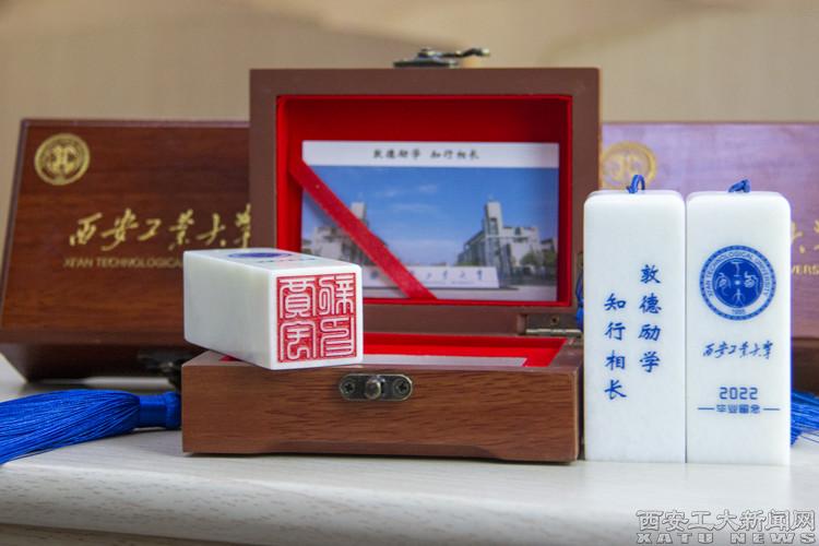 (本网讯)盛夏未央,毕业将至。为增强毕业生的归属感和获得感,营造浓厚和谐的毕业氛围,激发毕业生感恩奉献之心、爱校荣校之情,学校为2022届毕业生定制了毕业礼物—蓝田玉纪念印章。纪念印章套装含礼品袋、礼盒、印章各一,礼盒内置印有学校大门的小卡片,印章正面为学校校徽,背面篆刻“敦德励学 知行相长”校训,印面为学生姓名,流苏特选西工蓝,寓意着西工见证了毕业生们的青春岁月,引领着莘莘学子奔赴锦绣前程。6月27...