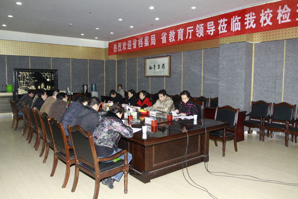 副校长陈桦对检查组的到来表示欢迎并介绍了学校的发展概况,党办校办主任王辉强主持会议。综合档案室主任、基建处处长分别就我校档案工作及新校区基建档案资料的收集、管理情况向专家进行了汇报。检查组实地查看了我校基建档案整理及归档情况后,认为我校重视档案工作,档案工作制度完善,基建档案的收集、整理规范;同时还提出了档案著录要标准、要注重电子文档的收集、要加强基建项目工程各阶段档案资料的收集等建议。