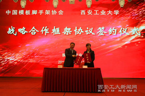 会上,中国模板脚手架协会理事长陆贻杰和我校建筑工程学院党委书记张英代表协会与学校签订了战略合作框架协议。大会为17家诚实守信企业和20篇优秀科技论文获得者颁奖,我校选送的1篇论文获得一等奖,3篇论文获得二等奖。