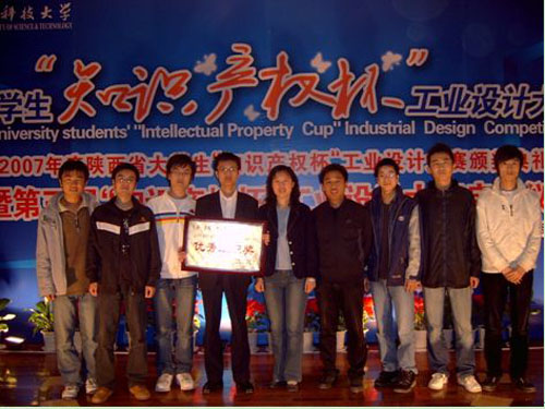 (本网讯)4月21日,2007年度陕西省大学生“知识产权杯”工业设计大赛颁奖典礼暨2008年度陕西省大学生“知识产权杯”工业设计大赛启动仪式在西安科技大学举行,万象城平台,万象城(中国)一站式服务平台艺术与传媒学院24名同学的17项作品分别荣获大赛二等奖4项、三等奖3项和优秀奖10项,西安工大荣获2007年度陕西省大学生“知识产权杯”工业设计大赛“优秀组织奖”,曹实同学作为获奖代表在大会上做交流发言。