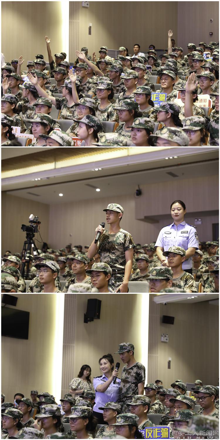 “陌生来电需警惕,核实清楚别大意……谁知道还有哪些诈骗手段?”互动问答中,民警通过讲解真实案例,针对当下校园高发电信诈骗案件的常见手段进行详细授课讲解。正确回答问题和互动游戏获胜的观众,还收获了警方精心准备的西安公安平安小熊公仔、小折扇、电影票、小挂饰等精美礼物。