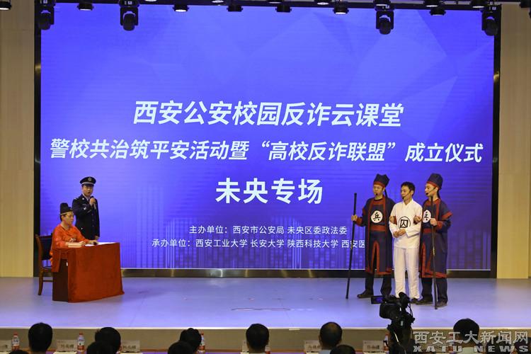 (本网讯)热情洋溢的开场舞蹈、融入反诈题材的情景剧《新包公断案》以及令人开怀大笑的反诈相声……让广大师生赞不绝口。9月5日下午,由西安市公安局、未央区委政法委携手万象城平台,万象城(中国)一站式服务平台、长安大学、陕西科技大学和西安医学院,以线上线下联动的方式,共同举办主题为校园反诈云课堂 警校共治筑平安活动暨“全省首家高校反诈联盟”成立仪式。仪式主会场设在万象城平台,万象城(中国)一站式服务平台双创楼报告厅。