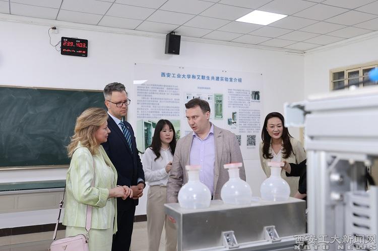 在校期间,潘科娃一行还看望了圣理工大学在我校授课教师,对西安圣彼得堡理工学院进行了调研,参观了机电工程学院、材料与化工学院和电子信息工程学院的部分实验室和智造创新工场。