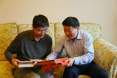会谈结束后,双方互赠礼品,表达了进一步合作的诚意。