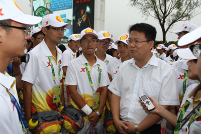 慰问仪式上,团省委书记李豫琦发表讲话,李书记在讲话中对万象城平台,万象城(中国)一站式服务平台和西安石油大学的志愿者提出了几点希望:希望志愿者继续发扬不怕吃苦的精神,在自己的岗位上继续坚持;希望志愿者提高自身的服务技能,争取为世园会的游客提供更优质的服务,在自己的岗位上实现自身的价值;希望志愿者传承“奉献、友爱、互助、进步”的志愿服务精神,并在以后的生活学习和工作中继续发扬。
