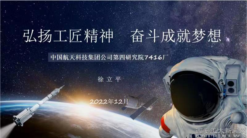 徐立平以“弘扬工匠精神 奋斗成就梦想”为主题,结合自身工作经历,讲述了献身航天事业30余年的默默坚守与付出,用最真切的案例描述了工作岗位上的一个个凶险异常、极其艰辛的故事,深刻诠释了航天人的牺牲、奉献,诠释了大国工匠执着专注、精益求精、一丝不苟、追求卓越的工匠精神,也诠释了工匠精神所蕴含的精致精细、奉献、坚持、创新的工作态度。他在报告中号召青年师生,要立志民族复兴,不负韶华,不负时代,在青春的赛道上奋力奔跑,让奋斗成为青春最亮丽的底色,让人生在实现中国梦的奋进中收获无限精彩。