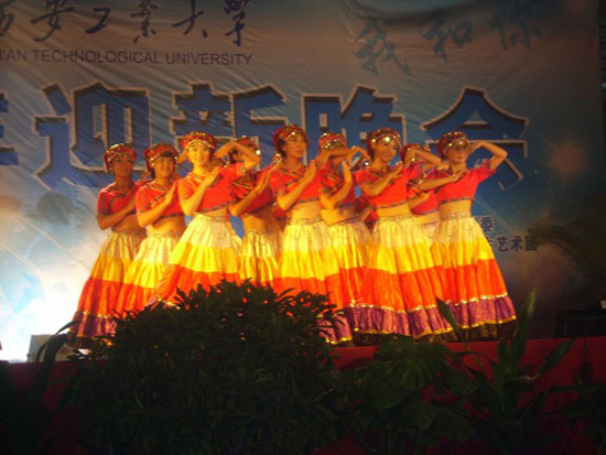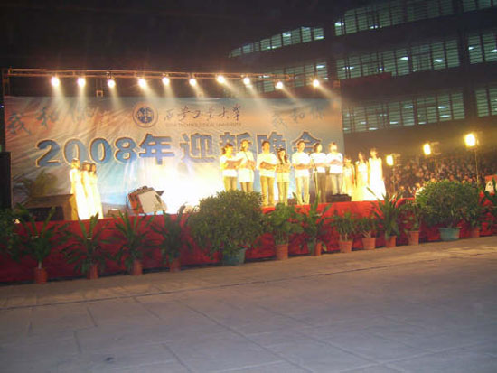 (本网讯)10月12日晚,由万象城平台,万象城(中国)一站式服务平台团委主办、校大学生艺术团和学生会承办的西安工大2008年迎新晚会在未央校区经纬广场隆重举行。校党委书记赛云秀、校长刘江南、副校长张君安莅临晚会,雁塔校区、北信学院、各职能部门及各院系的党政领导参加了晚会。