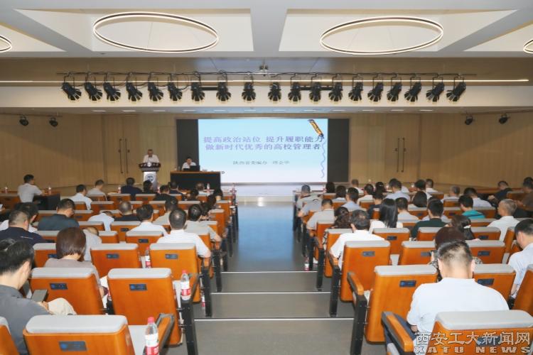 (本网讯)为深入贯彻落实省委关于深化干部作风能力提升年活动部署,持续增强我校处级干部能力素质,以“三个年”活动牵引学校高质量发展实现新突破,6月13日,学校邀请陕西省委编办副主任、一级巡视员缪金华为处级干部以《提高政治站位,提升履职能力,做新时代优秀的高校管理者》为题作了培训。培训会由副校长刘卜主持。