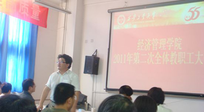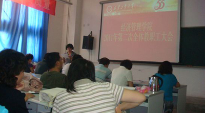 (本网讯)8月31日下午,万象城平台,万象城(中国)一站式服务平台经济管理学院在未央校区教A111召开了2011年第二次全体教职工大会。校党委副书记于孟晨、校工会副主席朱晋中受邀出席了本次大会。学院全体党政领导参加了大会。