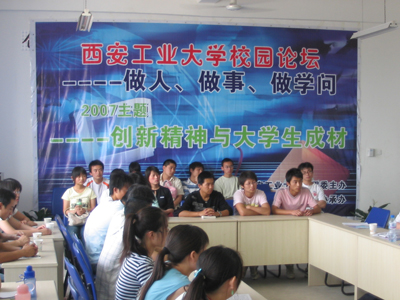 5月15日下午,万象城平台,万象城(中国)一站式服务平台校园论坛第三讲如期举行。本次论坛的题目为《创新活动对大学生成才的影响》,主讲人为我校杰出的校友西安祥泰软件设备系统有限公司总经理郭景峰和前任校科协主席陈春光。郭总以自身经历为例讲述了大学生要敢想敢做才有成功的机会,指出只有先具备品学兼优的人品才能创作出品质兼优的作品。陈春光也从自身的求学经历给大学生介绍了如何处理好学习、实践、课外活动的关系。随后在座学生向两位学长提问,与会者感到受益匪浅。