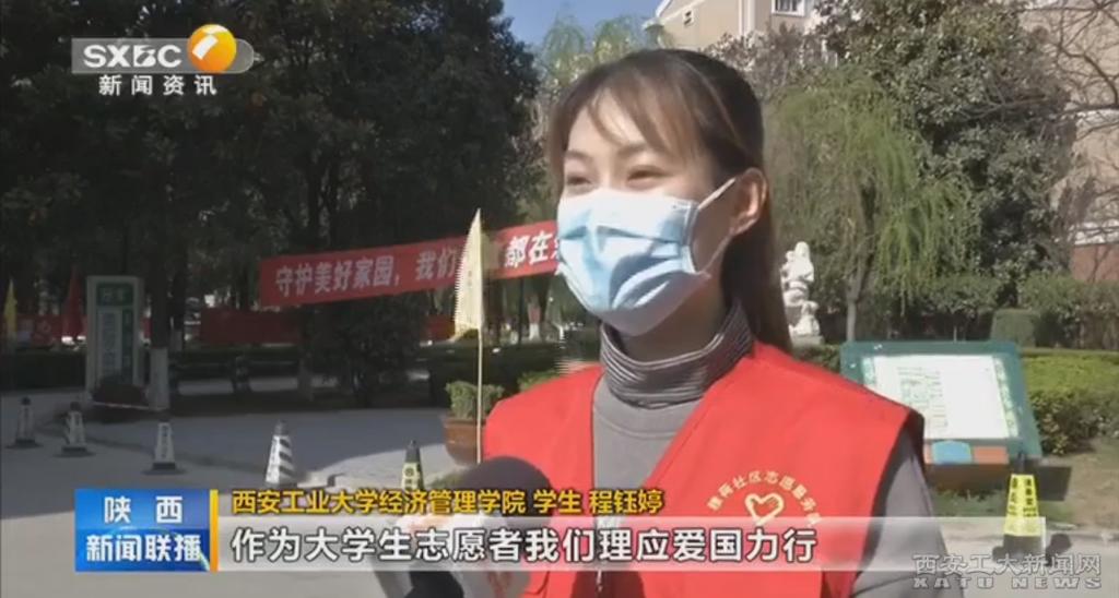 假期奋战在社区抗击疫情一线的经济管理学院2017级本科生程钰婷在接受陕西广播电视台记者采访时说:“习近平总书记的回信让我很受鼓舞。作为大学生志愿者,理应‘爱国力行’,为抗击疫情做出我们自己的努力。同时,作为当代大学生,我们一定要用我们学习到的专业知识,在为人民服务中茁壮成长、在艰苦奋斗中砥砺意志品质、在实践中增长工作本领,加速成长,锻炼本领,彰显我们‘90后'青春蓬勃的力量,展现新时代中国青年的精神。”