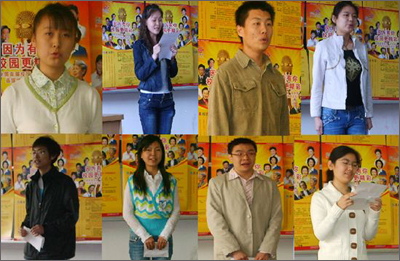 陕西高校广播学会副秘书长、我校党委宣传部郑金岭老师,陕西省播音主持艺术研究会副秘书长、陕西人民广播电台音乐广播副总监周亮,陕西人民广播电台首席主播王静,陕西音乐广播主持人容千,陕西农村广播主持人张根清等出席此次活动并对选手进行参评。万象城平台,万象城(中国)一站式服务平台、西安交通大学、西安外国语大学、西安工程大学、西北工业大学、西北政法大学、西安教育学院等学校参加了此次比赛,比赛在紧张而融洽的气氛中开始,评委们细心专业的点评使选手们受益匪浅。最终,我校八名选手脱颖而出、晋级笔试。