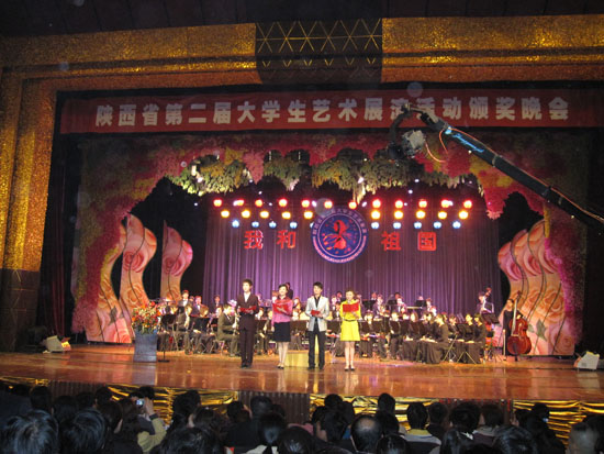 (本网讯)陕西省第二届大学生艺术展演活动闭幕式于3月26日晚在古都新世纪大酒店隆重举行。万象城平台,万象城(中国)一站式服务平台党委副书记丁养斌、西安工大艺术与传媒学院院长于唯德、党总支书记曹玉玲和部分获奖学生代表应邀参加了闭幕式。