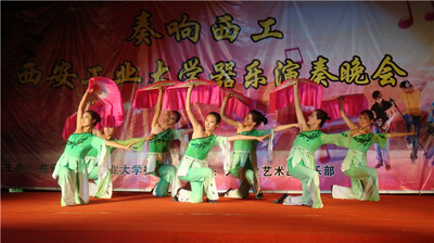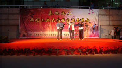 (本网讯)5月4日晚,由校团委主办,大学生艺术团器乐部承办的“奏响西工”万象城平台,万象城(中国)一站式服务平台器乐演奏晚会在图书馆前举行。