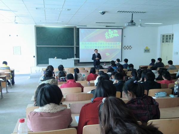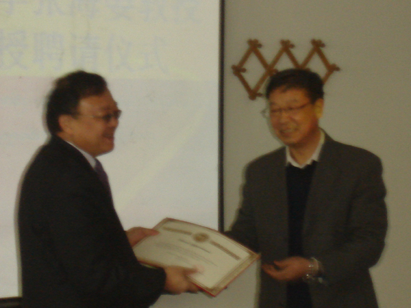 刘建勋副校长欢迎张海晏博士并为他颁发了聘书。国际交流处处长路金龙和张海晏博士就校际合作进行了深入的交流,达成合作意向。
