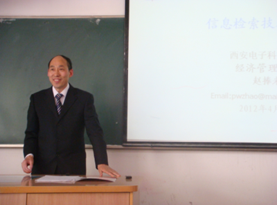 下午2:30,赵捧未教授“信息检索技术进展”学术报告会在金花校区举行。报告会上,赵捧未教授从情报学的内涵与外延、情报学的特性、情报学研究热点等方面介绍了情报学相关研究动向;从情报的基本概念、情报检索的基本原理、计算机情报检索等方面介绍了信息检索的内涵;从数字图书馆、跨语言信息检索、多媒体信息检索、知识检索等方面介绍了检索技术的主要进展;并且介绍了西安电子科技大学经济管理学院的信息资源管理团队在该研究方向的研究成果和研究动态。