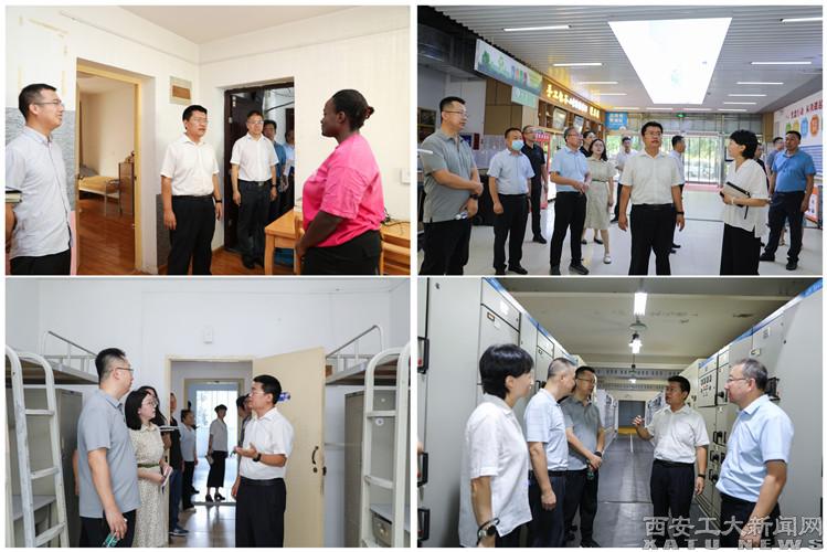 党办校办、学工部(学生处)、研工部、国际教育学院、本科生院、国资处、图书馆、保卫处、总务处(基建处)、校医院等部门负责人陪同检查。