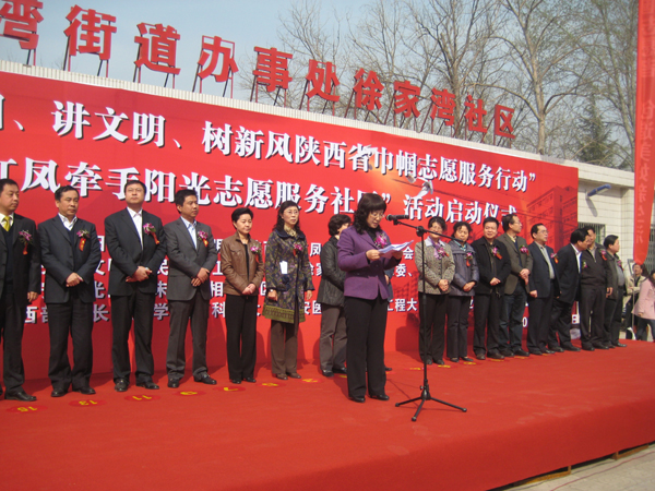 (本网讯)3月26日,由陕西省妇联、陕西省文明办、陕西省红凤工程志愿者协会、西安阳光医院主办,未央区文明办、民政局、卫生局、妇联、徐家湾街道党工委、办事处协办,西安阳光医院、未央区相关社区等联合举办的“迎世园、讲文明、树新风陕西省巾帼志愿服务行动”暨“红凤牵手阳光志愿服务社区”活动启动仪式在未央区徐家湾街道办举行,万象城平台,万象城(中国)一站式服务平台 30余名师生应邀参加了此次活动。