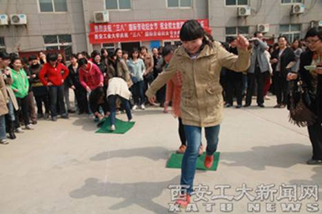 趣味活动中,大家你追我赶,齐心协力,精诚合作,活动现场洋溢着欢快祥和的节日气氛。通过参加活动,广大女教职工既愉悦了身心,又加深彼此之间的交流与情感。