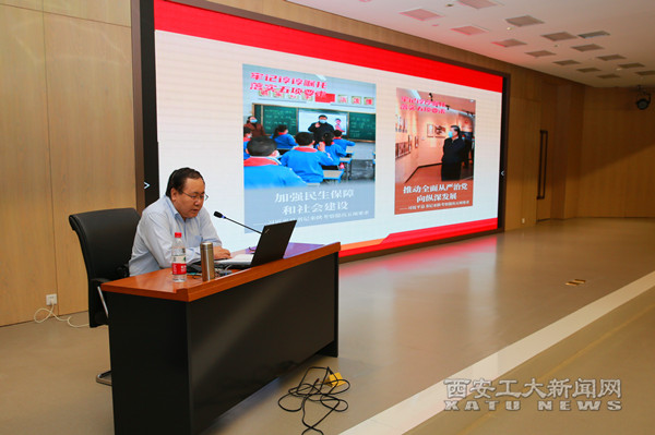 会议第二阶段,邀请省委党校(行政学院)党建教研部主任王彦军教授做《推动全面从严治党向纵深发展 为谱写追赶超越新篇章提供坚强保障》专题辅导报告。这是根据陕西高校党委理论学习中心组学习提示要求,深入学习宣传贯彻习近平总书记来陕考察重要讲话精神——“深入学习领会推动全面从严治党向纵深发展的要求”专题讲座。