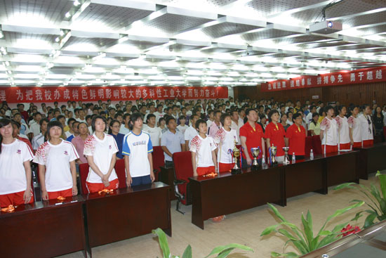 校办主任张志昌主持表彰会。各基层党总支书记,学校女篮全体队员,各院系、北方信息工程学院、雁塔校区的学生代表以及体育系全体师生参加了大会。