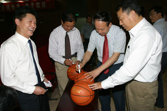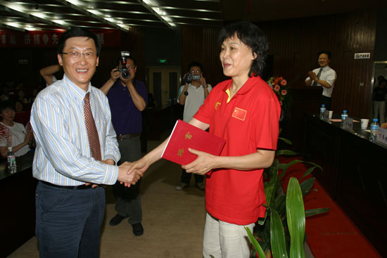 会上,体育系主任谷崎介绍了我校女篮的成长经历及夺冠经过。党委副书记丁养斌宣读了未央区委、区政府的贺信。校长刘江南宣读了表彰决定:授予体育系“优秀组织单位”称号;授予单瑞荣、高辉、刘鹏 “优秀教练员”称号;授予宋雷等十位运动员“优秀运动员”称号,并宣布从校长基金中拨出五万元奖励女篮。会上,校领导还为受表彰的教练员、运动员颁发了荣誉证书,并与他们一起合影留念。副校长张君安宣读了聘任“优秀教练员” 单瑞荣为我校双聘教授的决定,刘江南校长为其颁发了聘任证书。