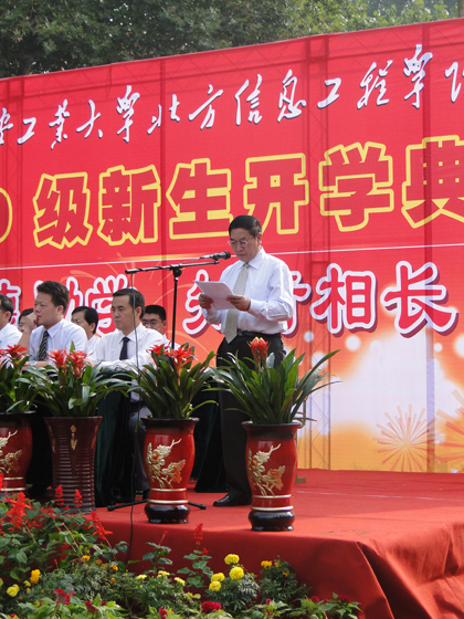 刘江南校长介绍了西安工大的基本情况以及和北信学院的渊源联系,他说,作为北信学院的坚强后盾,西安工大将一如既往的支持北信学院的发展,从学风建设、师资配备和教学管理等方面提供大力支持。他鼓励同学们珍惜大学美好时光,学会立志,学会做人,秉承“敦德励学,知行相长”的校训,不懈努力,把自己打造成德才兼备的社会栋梁之才。