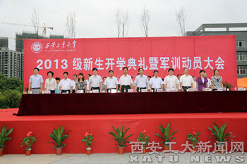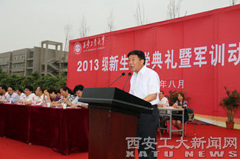 党办、校办主任王辉强主持典礼。教务处、学生处、团委等有关部门负责人,各学院院长、党委(总支)书记以及2013级5742名研究生、本科生新生参加。