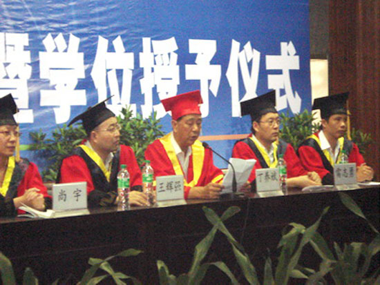 学生代表侯瑞发言说:“我们在这里生活,在这里学习,面对严寒和酷暑,我们09届毕业生从骨子里透出了一股刚强的精神,我们不仅仅拿到了学位证书,同时还获得了一笔可贵的精神财富。”他说出了所有毕业生的感言,赢得热烈的掌声。