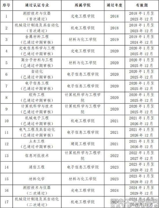 (本网讯)近日,中国工程教育专业认证协会发布了《关于公布北京理工大学机械工程等193个专业认证结论的通知》和《关于公布上海交通大学机械工程等304个专业工程教育认证中期审核结论的通知》,我校“测控技术与仪器”“机械设计制造及其自动化”专业顺利通过二次认证(有效期6年),“机械电子工程”“电气工程及其自动化”“土木工程”专业通过有效期内中期审核。