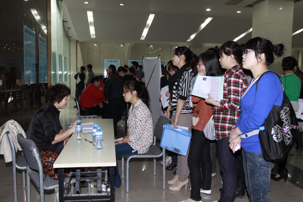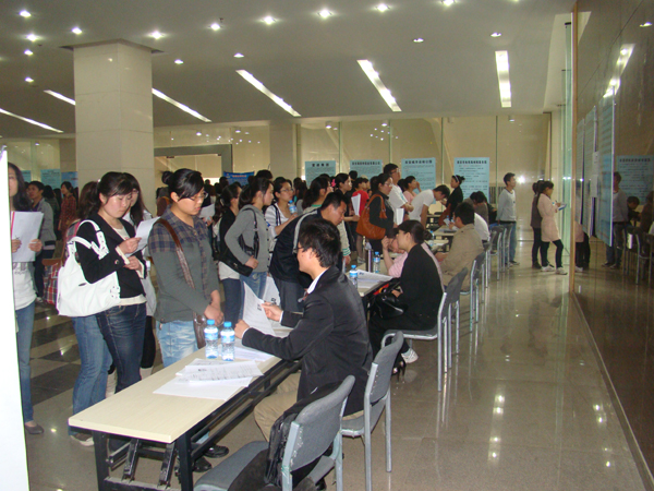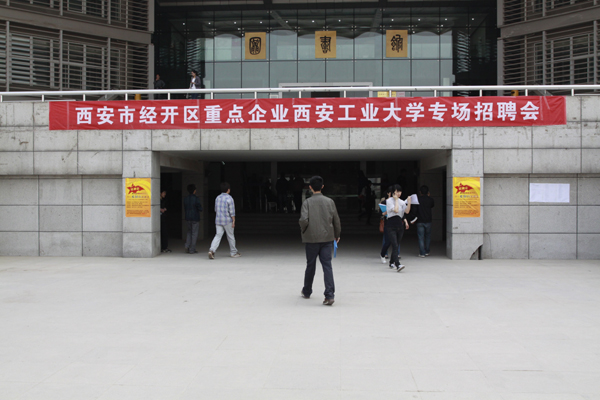 (本网讯)4月15日上午,“西安市经开区重点企业万象城平台,万象城(中国)一站式服务平台毕业生专场招聘会”在我校未央校区图书馆举办。康师傅西安顶益食品有限公司、西安经发地产有限公司、西安经发高级中学等20多家单位前来招聘人才,我校和兄弟高校1000多名毕业生参加了本次招聘会。