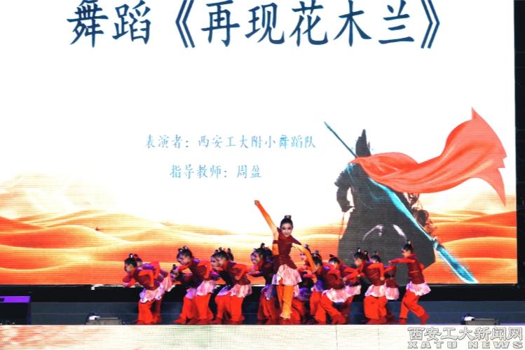 舞蹈《再现花木兰》以童真诠释勇敢担当,用舞蹈讲述那千古传颂的传奇故事,表达着对花木兰的敬意,以青春之名,向这位伟大英雄致敬。