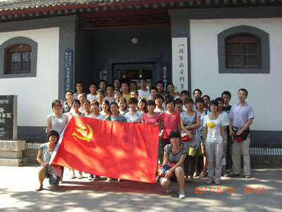 (本网讯)为庆祝建党90周年,使学生对党的发展历史有更明确的了解,加强爱国主义教育,6月10日下午理学院组织学生党员参观了八路军西安办事处旧址。