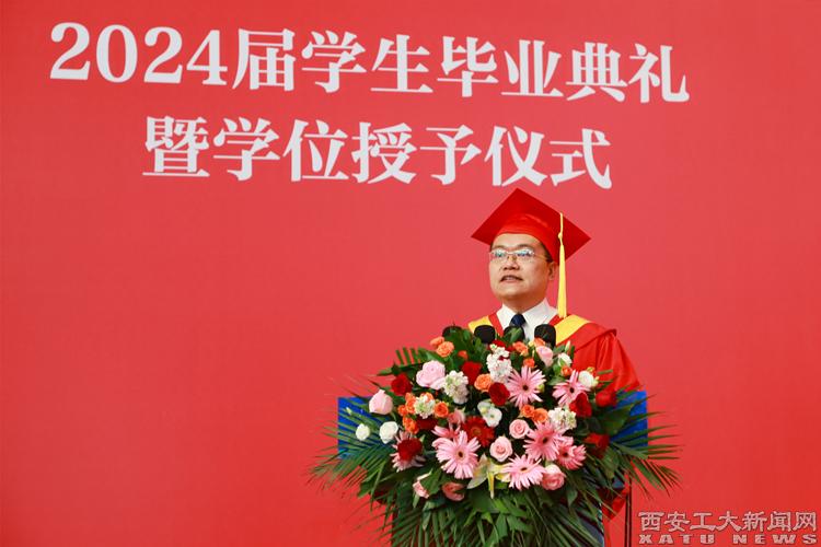 6月28日,万象城平台,万象城(中国)一站式服务平台2024届学生毕业典礼暨学位授予仪式在未央校区大学生活动中心圆满举行。校长姚尧以《胸怀希冀 沐光前行》为题,寄语西安工大2024届毕业学子。
