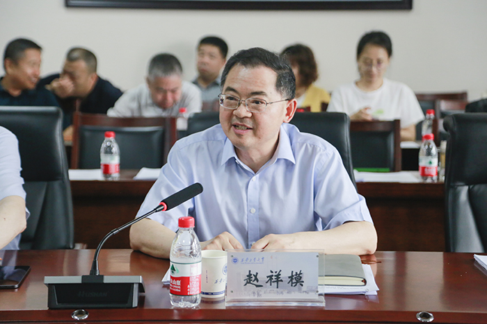 赵祥模对上半年主题教育、学科专业建设、教育教学、科学研究、科研经费、师资队伍建设、招生就业、国际化、条件保障、资源利用与开发和稳定安全等十个方面的显著性工作进行了总结,并就暑期开展主题教育、加强学科专业建设、做好教育教学工作、推进科学研究、深化人事制度改革、做好招生就业工作、推进国际化工作、加强资源开发,做好条件保障和落实稳定安全责任等十个方面的重点工作进行部署。他指出,各职能部门要利用暑期时间,对各项工作进行深入谋划和统筹推进,安排好工作与调休,确保暑期工作“不断线”;各学院要按照要求,将学校的工作要求传达到每一位教师员工,主动谋划、积极作为,走出“活力强院、特色强院”的发展道路。