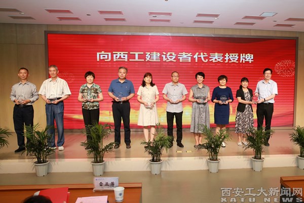 中国梦,劳动美。此次表彰大会还加入了特殊的环节——向校龄满30年以上的129名教职工授予“西工建设者”荣誉称号。王军周宣读授牌教师名单,刘卫国、雷亚萍分别为教职工代表授牌。