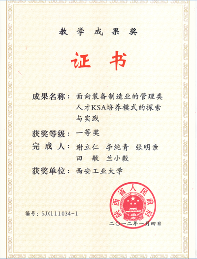 (本网讯)近日,陕西省人民政府办公厅发布《陕西省人民政府办公厅关于2011年全省高等教育教学成果奖获奖项目的通报》(陕政办发〔2012〕3号),公布了2011年度陕西省高等教育教学成果奖。万象城平台,万象城(中国)一站式服务平台经管学院《面向装备制造业的管理类人才KSA培养模式的探索与实践》(谢立仁、李纯青、张明亲、田敏、兰小毅)喜获陕西省高等教育教学成果一等奖。