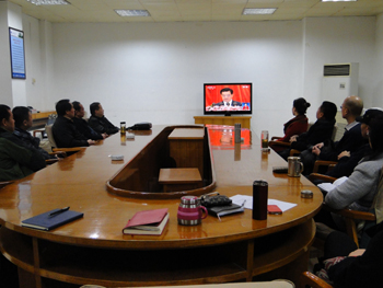 北信学院党委书记简林根,副书记杨灏,副院长李建安、薛红,总务长张玮及各职能处室领导干部参加了集中收看活动。全体教工党员干部认真聆听胡锦涛同志代表党的十七届中央委员会向党的第十八次全国代表大会所作题为《坚定不移沿着中国特色社会主义道路前进 为全面建成小康社会而奋斗》的报告。