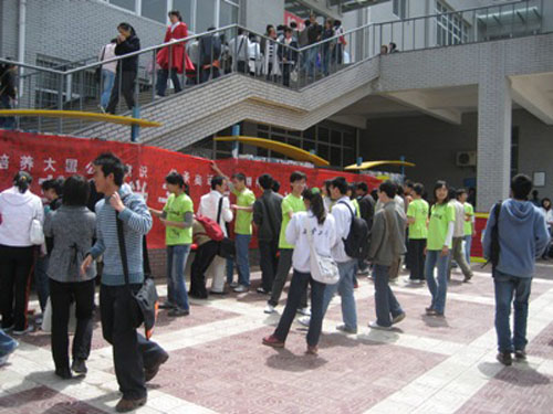 上午十点,迎奥运万人签名活动在西安工大未央校区隆重举行,两校学生代表们向前来签名的学生们发放了奥运知识宣传单,号召学子们积极了解奥运知识。学子们怀着对祖国的深深热爱之情将自己对北京2008年奥运会的梦想书写在了签名条幅上,并为奥运会送去了他们的赤诚祝福。在签名活动结束之时,两校学生代表将载着西安学子奥运梦想的签名条幅仔细整理,做好将学子梦想寄往奥组委的准备。于此同时,一场精彩的篮球友谊赛在西安工大未央校区正在激烈而友好地进行。