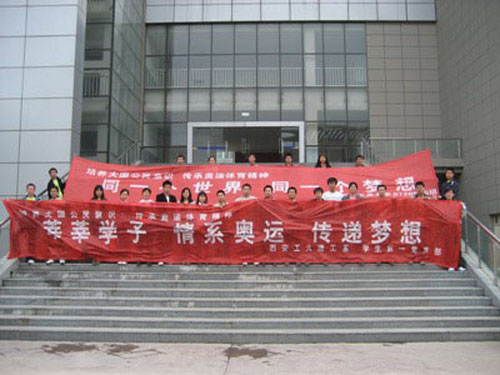 系列活动以“莘莘学子,情系奥运,传递梦想”为主题,分“迎奥运万人签名活动”、“健身迎奥运”篮球友谊赛和“我与奥运同行”讨论会三个板块,由西安工大建筑工程系与西工大机电学院研究生学生会联合举办。