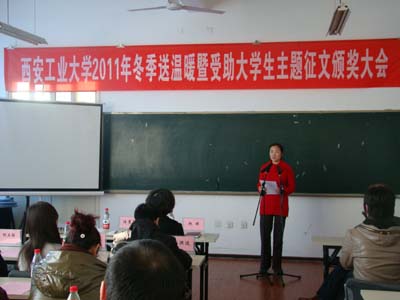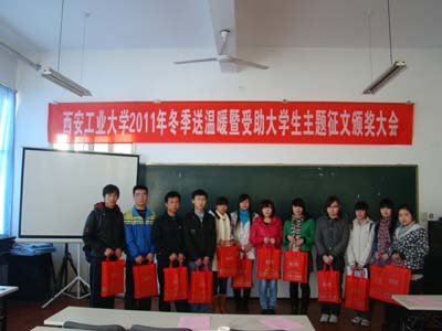 一件件爱心物品包含着学校对贫困学生的关怀和爱戴,一篇篇优秀征文洋溢着西工学子的感恩之情和报国之心。冬季送温暖活动是我校打造暖心工程的重要内容,也是是我校帮困育人、爱心助学工作的传统项目,已经连续举办六年。2011年共有500余名家庭困难学生收到了学校赠送的爱心物品,感受到了学校对他们的期望和关怀。