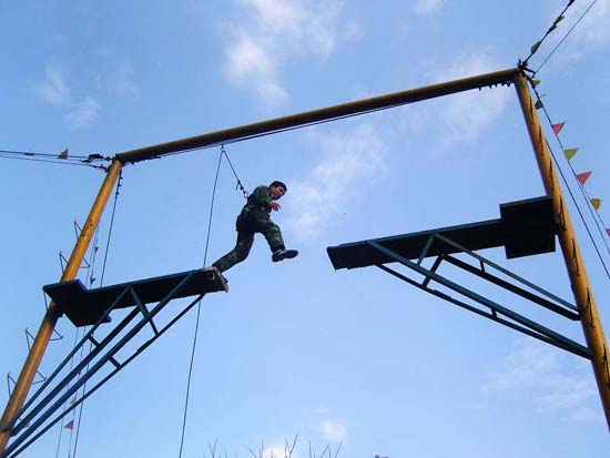 培训师将所有学员分成两组,并通过几个心理小游戏让大家迅速的融入到了自己的团队角色之中。在为期一天的训练中,共完成了高空断桥、高空绳索、穿越电网等拓展科目,大家积极参与,努力拼搏,各队的队员之间精诚合作,圆满完成了本队科目。