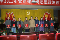 最后,校党委书记赛云秀发表了重要讲话,他简要回顾了我校近几年党建及思想政治教育工作成果:党性意识不断增强,党员先进性作用不断体现;理论武装头脑,推动科学发展;创先争优,基层组织活力全面增强;基层党组织建设不断完善;大学生思想政治教育工作不断加强;庆祝建党90周年活动扎实有效等。赛书记强调:在充分肯定成绩的同时,也必须清醒地认识到还存在着许多问题和不足。