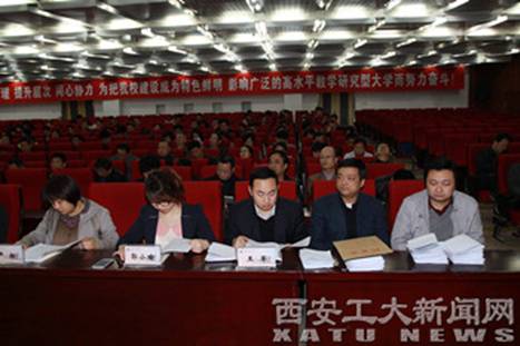 (本网讯)3月14日下午,我校召开了校领导班子和领导干部2012年度目标责任考核工作大会。陕西省高等学校2012年度目标责任考核第五工作小组组长、西安财经学院党委副书记、纪委书记阎东明,考核组成员省委组织部宣教干部处副调研员卢扬,省委教育工委、省教育厅干部人事处干部郭小瑜,西北大学党委组织部组织科科长王军出席了会议。学校党委委员、纪委委员、学术委员会委员、工会委员、正高职称专业技术人员、正处级以上领导干部、市级以上人大代表、政协委员,民主党派主要负责人及学生代表参加了大会。大会由校党委书记赛云秀主持。